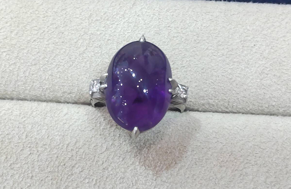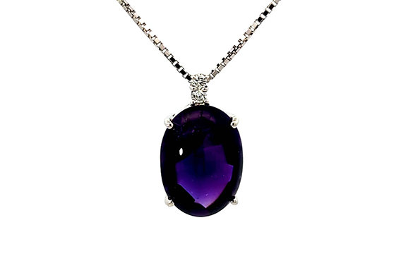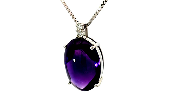 プラチナのアメジストリングを、ネックレスにリフォームしました。地金やメレダイヤを活かして、石の魅力を引き立てるシンプルで上品なデザインに。出番の少なかったリングが、普段使いしやすいジュエリーに生まれ変わりました。チェーンはきらめきが美しいベネチアンタイプを使用しています。