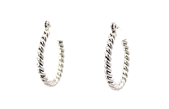 前回のリフォームで残ったK14ホワイトゴールドの地金を使って、フープピアスにリフォームしました。ツイストの効いたデザインが耳元で軽やかに輝き、シンプルながら存在感のある仕上がりに。大切な素材を無駄なく活かした、想いのこもった一点です。