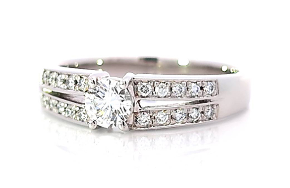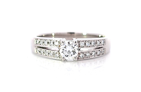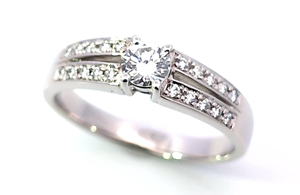 0.3カラットのプラチナダイヤリングをリフォームしました。センターダイヤはそのままに、アーム部分にはメレダイヤを二列に並べて華やかさをプラス。上品で存在感のあるデザインに仕上がりました。高さもなく日常にも出来るリングに生まれ変わりました。