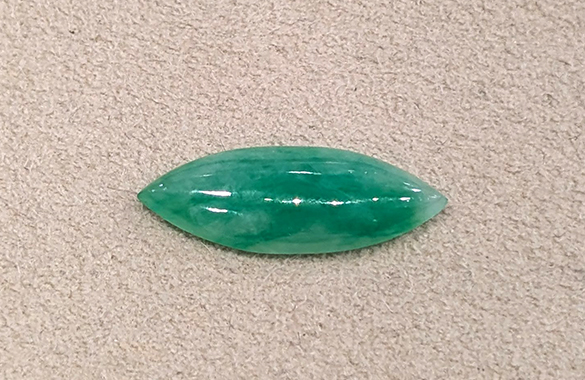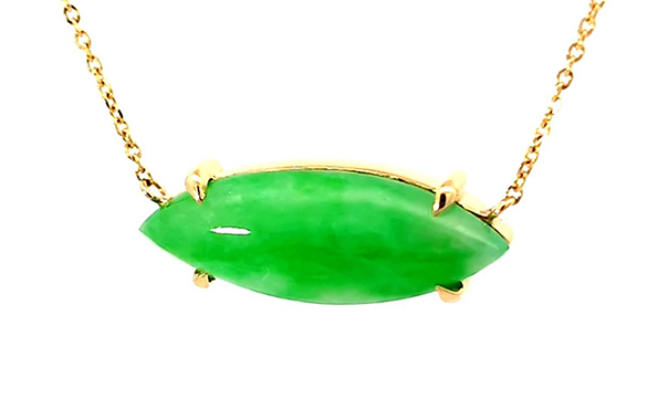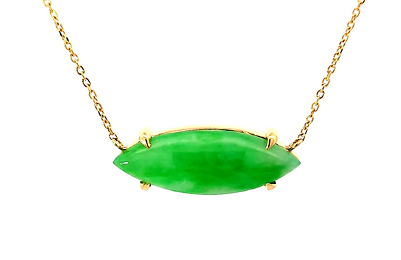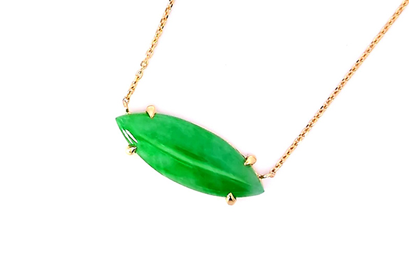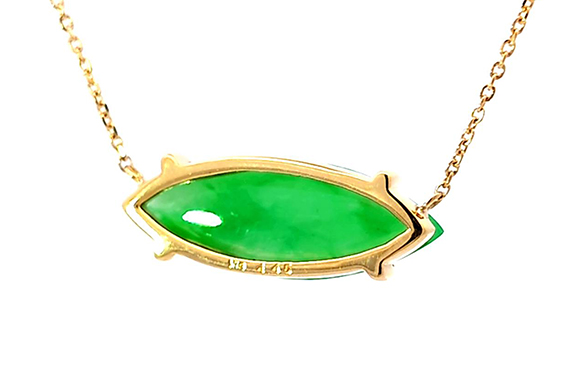 緑色の天然石ルースを横向きにセットし、K18ネックレスに仕上げました。傾きのないバランスの取れたセッティングで、ナチュラルな美しさが引き立ちます。