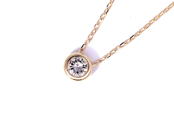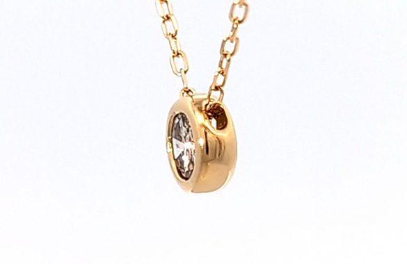 0.2カラットのK18ホワイトゴールドのダイヤリングを、K18イエローゴールドのダイヤプチネックレスにリフォーム。シンプルな覆輪留めで、ダイヤの輝きが際立つ、普段使いしやすいデザインに仕上がりました。
