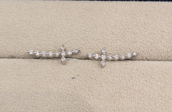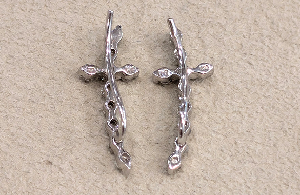 K18WGダイヤイヤクリップをピアスに加工しました。クリップ金具をカットしてピアスポストを付けました。