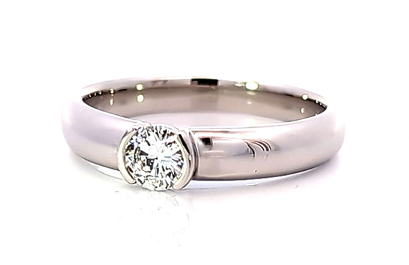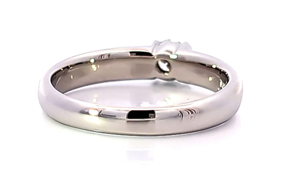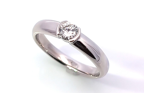 0.3カラットのプラチナダイヤリングを、シンプルで日常使いしやすいデザインにリフォームしました。立て爪デザインから、引っかかりの少ないすっきりとした覆輪風セッティングへ。優しく指になじむ甲丸のアームが使いやすさと上品さを兼ね備えた一本に生まれ変わりました。