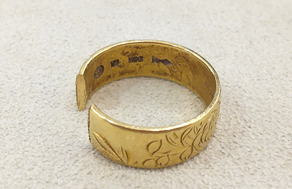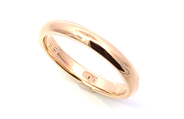 カットされたK18リングを、毎日着けたくなるようなシンプルな2.5ミリの甲丸リングにリフォームしました。つけ心地よく美しい輝きがよみがえりました。