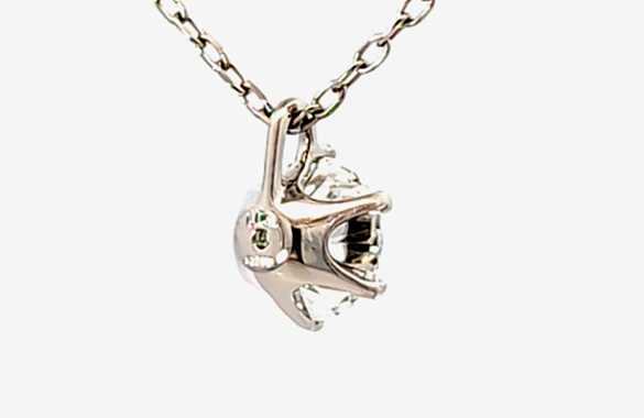 大粒1カラットのプラチナ立爪ダイヤリングをシンプルな6本爪のプチネックレスにリフォームしました。日常でも使いやすいダイヤの輝きが一層引き立つ上品なデザインに生まれ変わりました。