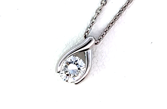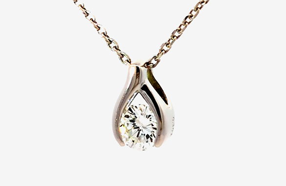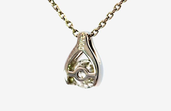 0.3ctのプラチナ立爪ダイヤリングを、すっきりとしたラインのプチネックレスにリフォーム。日常使いしやすいデザインに生まれ変わりました。