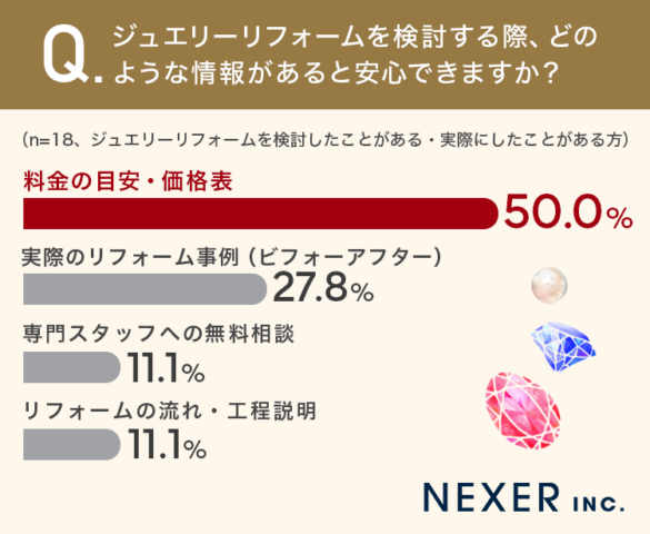 最後に、ジュエリーリフォームを検討した経験のある方に、どんな情報があれば安心できるかを聞いてみました。