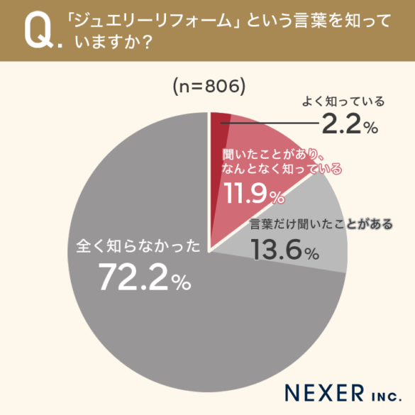 そこで、今回はNEXERと共同で全国の男女806名を対象に「ジュエリーリフォームの認知度」に関するアンケートを実施しました。