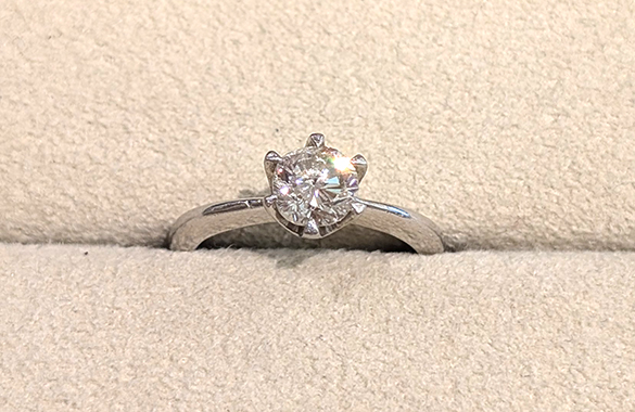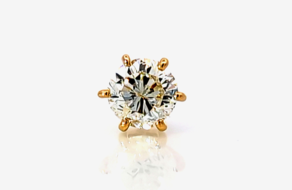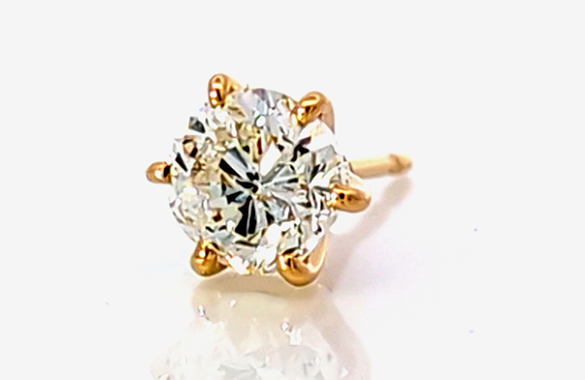 1カラットのプラチナダイヤリングを、K18のダイヤピアスへリフォームしました。6本爪のシンプルなデザインで、ダイヤの輝きがより引き立つ仕上がりに。今回は片方のみの制作。さりげなくも存在感のある一点に生まれ変わりました。